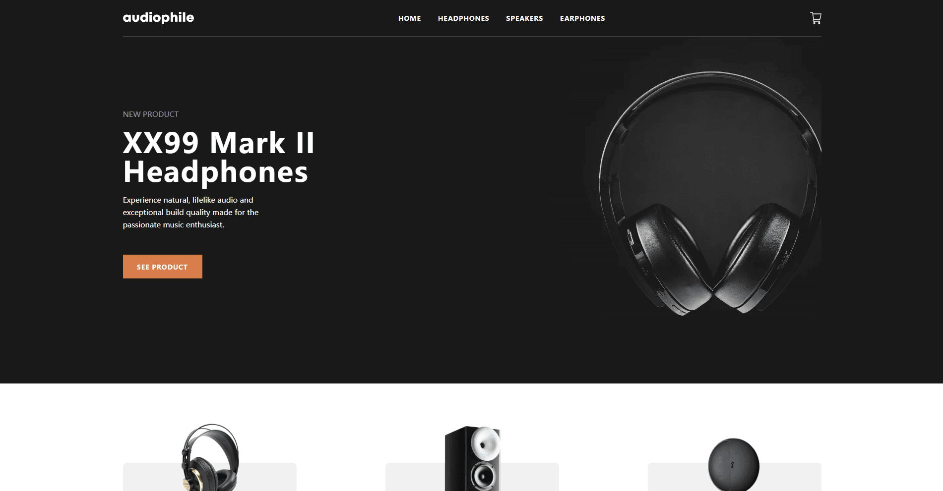 An ecommerce template for small bussiness. Although this template showcases a store for audio devices, it could be used showcase any type of product.